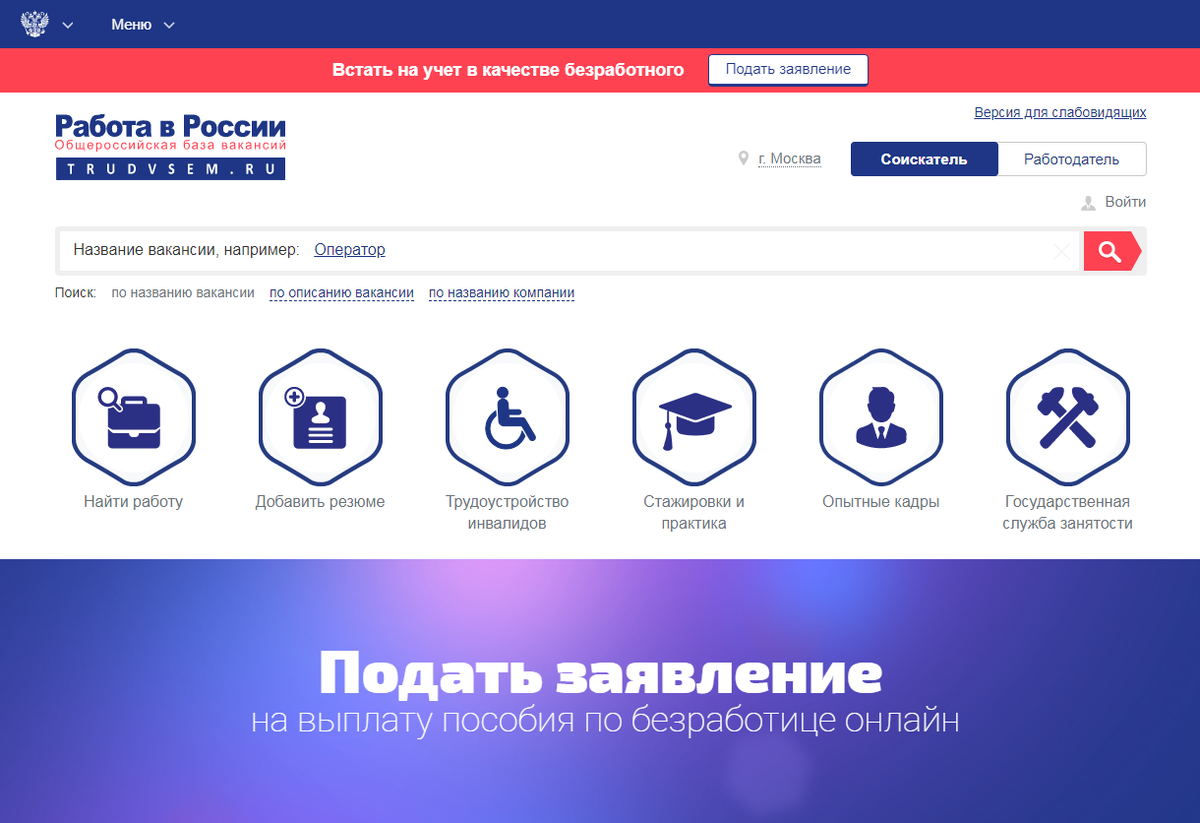 Портал "Работа в России" предлагает 1.3 миллиона действующих вакансий.