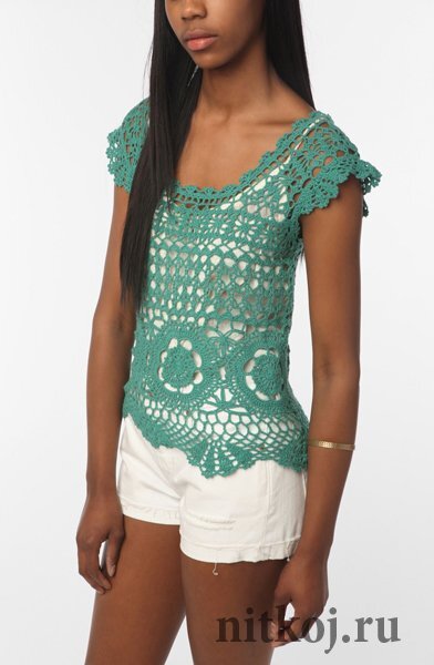 Я традиционно отдаю предпочтение минимуму ажуров, мне по душе лицевая гладь, платочная вязка. Вы, естественно, можете иметь другие приоритеты. Возможно вы можете похвастать шикарной фигурой и с лёгкостью её продемонстрируете в топе с открытым животом. Чаще всего такую модель вяжут крючком, в укороченном варианте, который прикрывает не весь живот и имеет бретели.