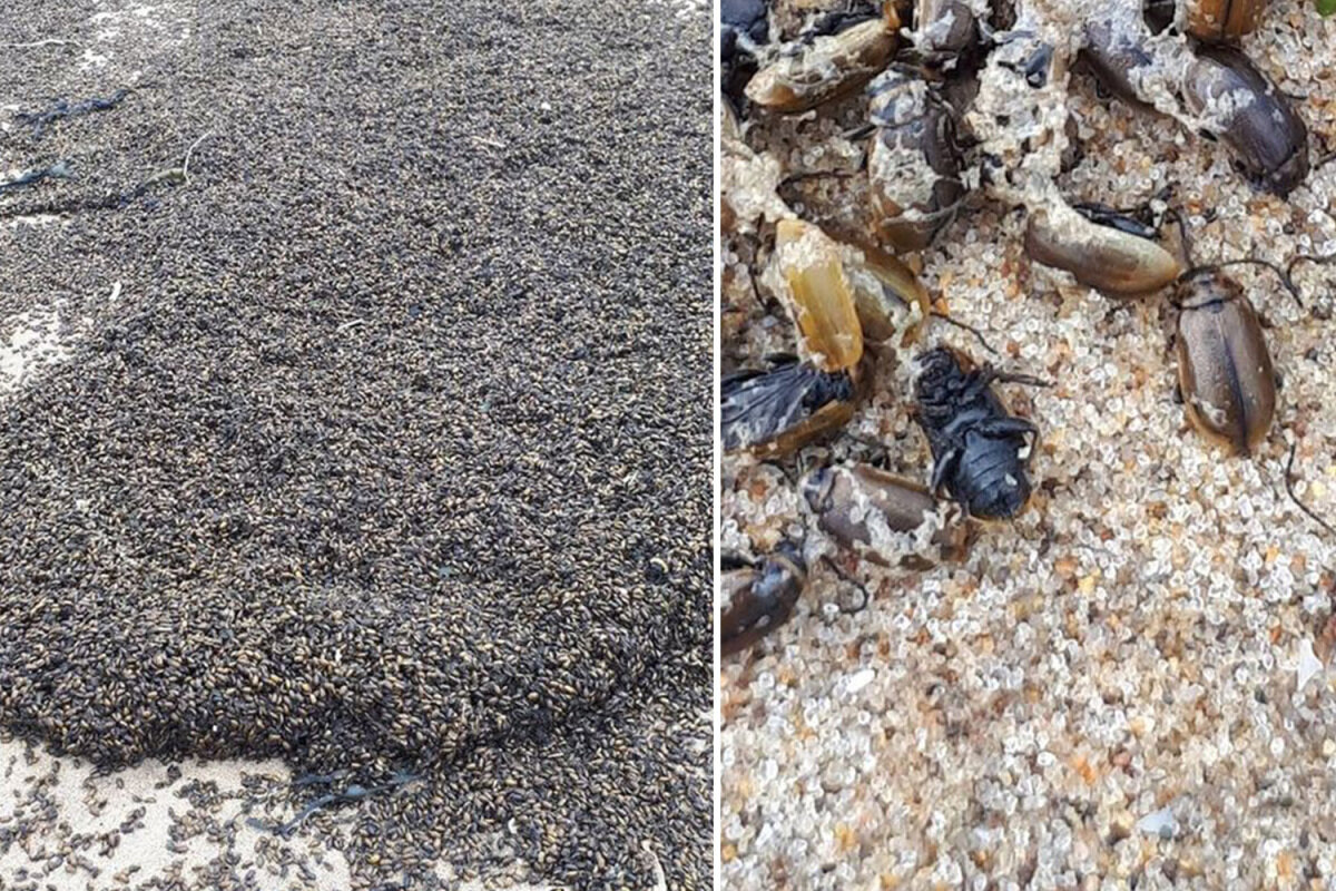 полчища насекомых на пляже — это майские жуки, которые обитают в континентальной Европе в тех местах, где нет выхода к морю. Как они оказались на побережье — до сих пор остается загадкой.