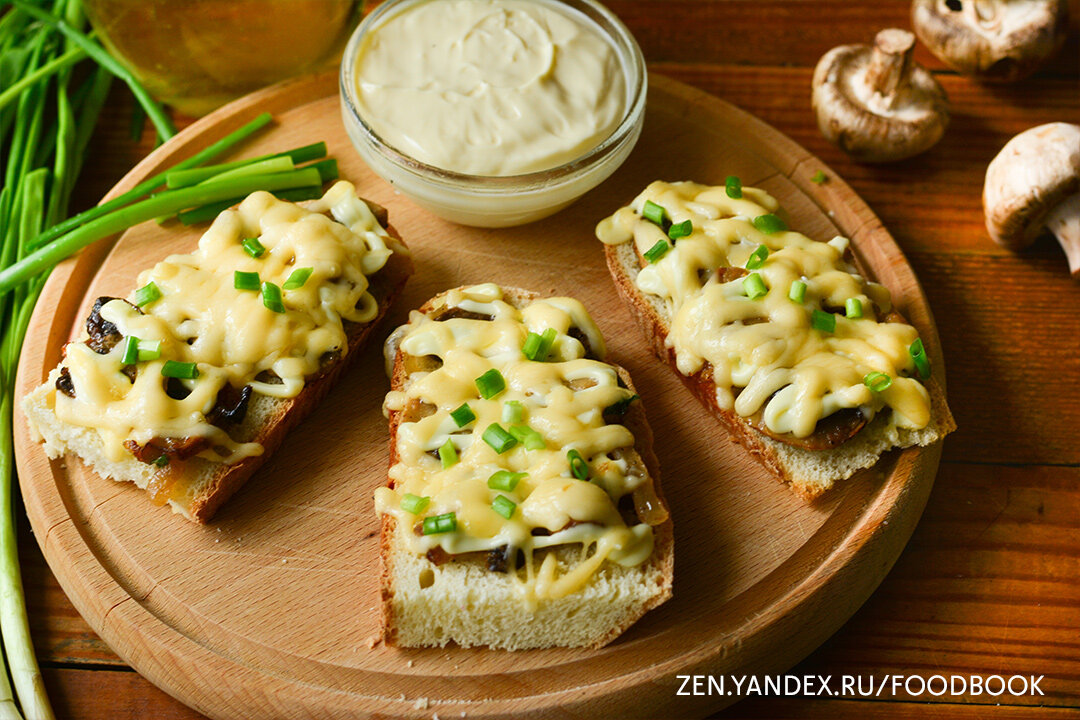 Однажды утром, когда нужно было готовить завтра для семьи, я обнаружила, что все, что у нас есть, это батон, зеленый лук, сыр, майонез и немного грибов. Из всего этого мне удалось соорудить невероятно вкусные бутерброды, на приготовление которых понадобилось не больше 15 минут.