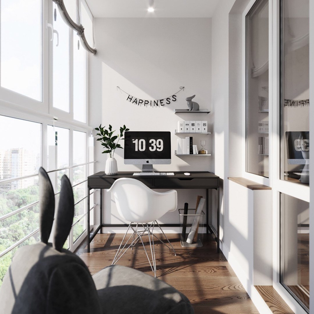 Перемен требуют наши сердца! Особенно, если в теплое время года приходится работать дома. Так хочется бросить все и уйти гулять, дышать свежим воздухом. Мы предлагаем пойти на компромисс: чтобы быть ближе к природе обустройте на балконе уютную зону для работы и отдыха. Что для этого понадобится? Рабочее место. Чтобы не загромождать и без того маленькое помещение, используйте минималистичную мебель. Самый простой вариант стола — столешница на кронштейнах, установить такую можно самостоятельно. Не забудьте о правильной высоте стола — 65-75 см. Качественное компьютерное кресло для балкона должно быть не только эргономичным и регулируемым, но и компактным. Оптимальная высота сиденья — 45-50 см. Зона отдыха. С одной стороны балкона организуйте «офис», а с другой — пространство для релакса, ведь именно умение делать паузы повышает продуктивность. Для этого подойдет бескаркасное кресло, диван, кресло-мешок или лежак — на них удобно как отдыхать, так и делать некоторые рабочие дела. Благодаря