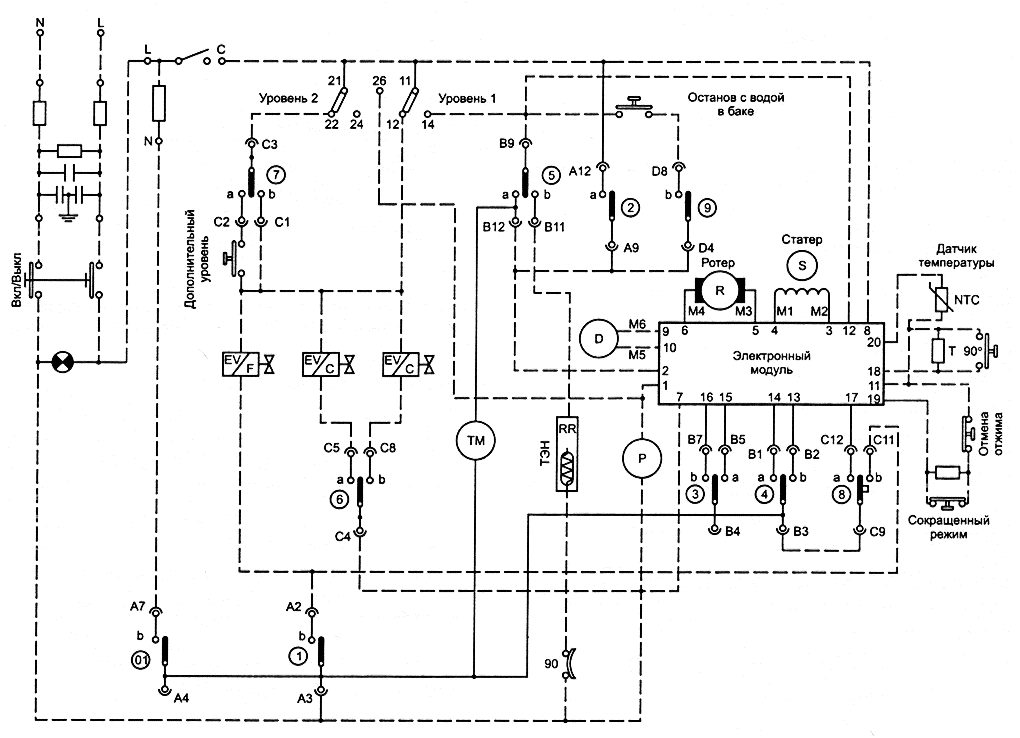 Вся информация можно посмотреть в сайте Все работает. Коды ошибки стиральных машин Kaiser. Современные стиральные машины сами себя умеют делать диагностику и отображают на дисплей (табло) код ошибки. Что бы мастер смог определится что именно сломался в стиральной машине. Устранение код ошибок стиральных машин Kaiser. Е01 - С концевого выключателя запорного механизма не поступает сигнал, что люк закрыт. Эта ошибка показывает что люк стиральной машины Kaiser открыт. Е02 - Медленно поступает вода в бункер стиральной машины. возможно что то случилось с клапаном. Е03 - долго сливает воду стиральная машина Kaiser. Неисправно работает Сливной насос. Е04 - Датчик уровня воды не успевает следить за водой. Поломка прессостата. Е05 - В водопроводе нет воды или напор недостаточно высокий для стирки или неисправно работает датчик уровня воды. Если на табло высветилось Е06 значит Сломан дренажный насос. Е07 - Протечка внутри корпуса – на поддон. Аквастоп. Разгерметизация бака стиральной машины Kai