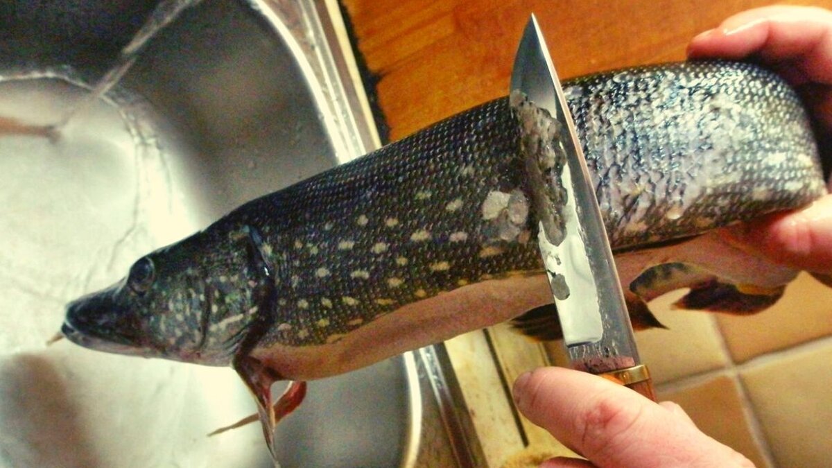 Кто-то считает, что мясо щуки не очень. Кто-то посмеется и скажет, что щука одна из самых вкусных рыб в наших реках, а какие котлеты...ммм! Ну а кто-то недолюбливает её, из костлявости, не настолько как лещ к примеру, но все же. Лично я считаю, что все варианты верны, но только от части. Давно заметил, что мясо может очень сильно разниться по вкусу из-за водоема, в котором была выловлена зубастая. Даже время года может вносить свои вкусовые коррективы. Что справедливо и для других видов рыб. Но фиг с ним вкус, что же делать с надоедливыми костями? Всего навсего надо уметь разделывать правильно на филе. Да, при такой разделке теряется часть ценного мяса, но его можно использовать для приготовления: бульонов, навара для ухи или даже рыбного соуса. Из двухкилограммовой щуки выходит примерно 700 грамм чистого филе, то есть где-то 1/3. Итак этапы разделки. Фото на каждый этап. Чешуя и внутренности. Тут ничего нового, очищаем рыбу от чешуи и внутренностей. Будьте аккуратны с желчем, его нужн