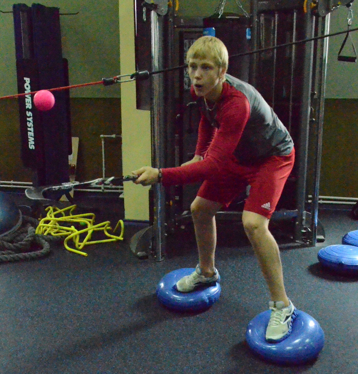 Стабилизация опорной ноги – важнейший аспект тренировки, который должен быть включён в каждую учебную программу по подготовке юных хоккеистов. Соревновательная практика представит вам огромное количество ситуаций, когда подобного рода стабилизация будет иметь решающее значение для ваших успешных действий в том или ином игровом эпизоде, не говоря уже о том, что хорошо сформированное устойчивое состояние, лучшая профилактика травм голеностопа. Этот сегмент вашей подготовки, имеет важное значение ещё и потому, что позволяет контролировать устойчивые состояния при движении в разных плоскостях (сагиттальной, фронтальной), которые крайне важны и необходимы при эффективной маневренной работе хоккеиста. Мы представляем вам ряд простых но продуктивных упражнений, которые каждый спортсмен может выполнять как самостоятельно, так и под руководством своего наставника, и которые обладают весьма эффективным воздействием на стабилизацию вашей устойчивости.