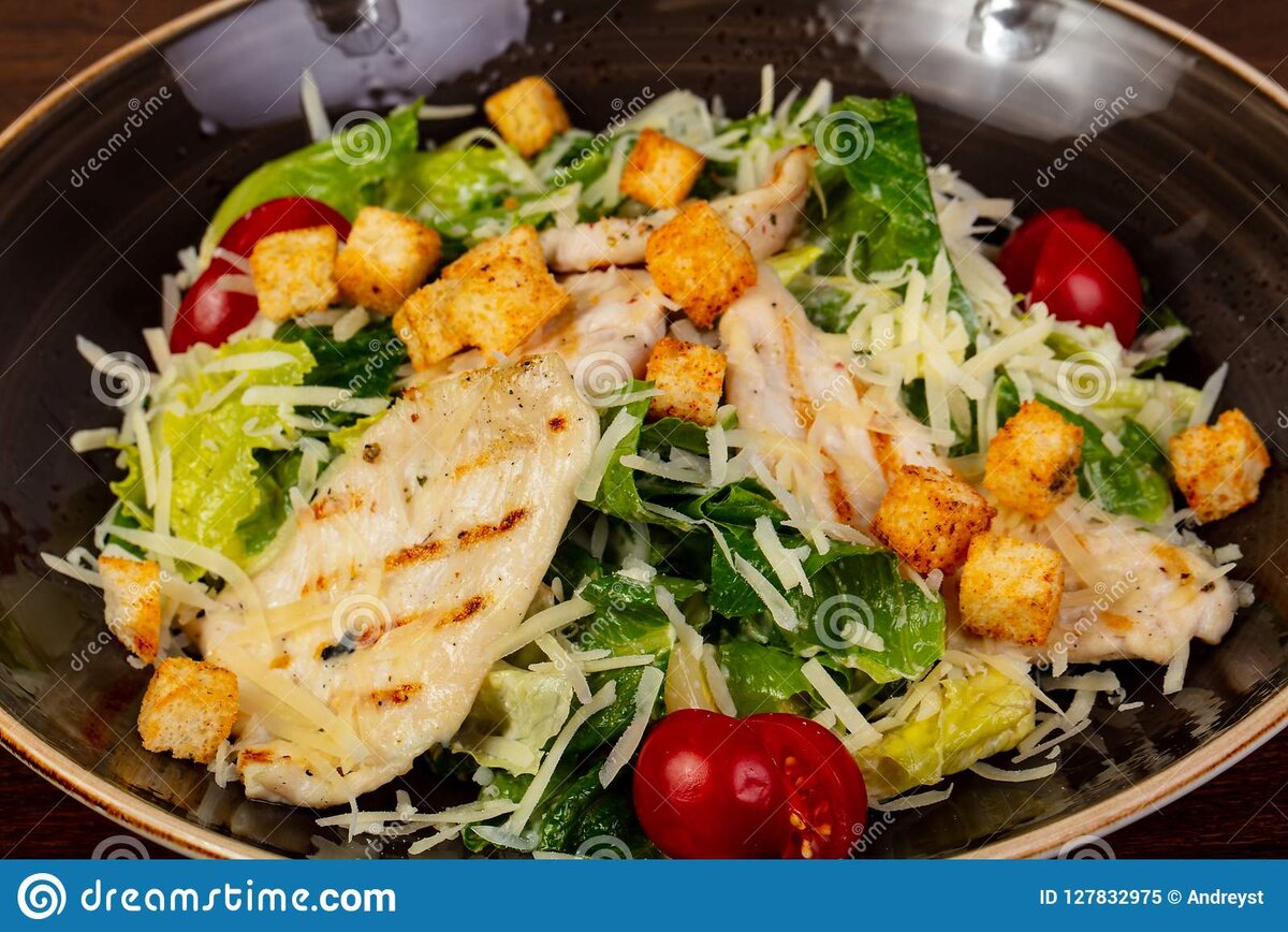 Здравствуйте, дорогие любители повозиться на кухне и просто случайные читатели...) Сегодня расскажу свой любимый и простой рецепт приготовления салата Цезарь. Он не сильно отличается от классического рецепта, но несколько нюансов, все же есть.) Салат будем делать с курицей. Прежде всего замаринуем куриное филе, пусть немного полежит, пока будем подготавливать овощи. Нарежем грудку - тонкими пластинками. Для маринада добавим по классике, соль , молотый черный перец, соевый соус, несколько капель уксуса 9%, каплю растительно масла и любые специи для курицы, которые будут у Вас в наличии. Пока наша куриная грудка впитывает маринад, займёмся промывкой овощей и салата Айсберг. По классическому рецепту в Цезарь не добавляют свежие огурцы и репчатый лук, но мне и моей семье ,эта идея понравилась и теперь я всегда их добавляю. Я уверен , что этими свежими овощами , вкус салата точно не испортишь...) Итак, овощи помыты, теперь мы их можем нарезать крупным кубиком. Лук нарезаем кольцами или п
