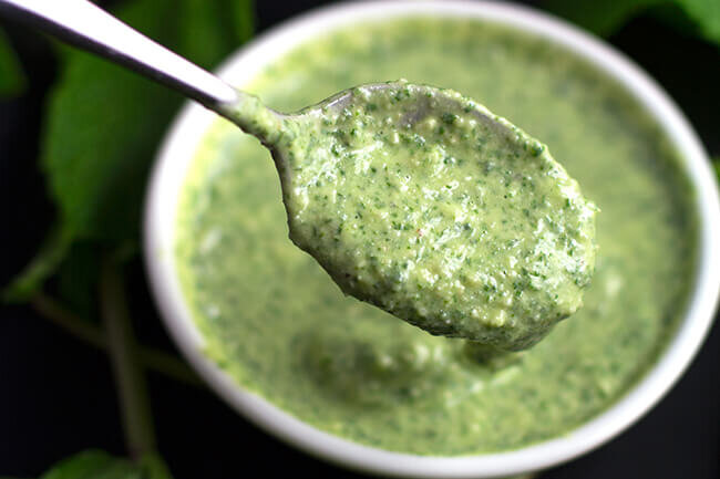 ЭТОТ СОУС НЕМНОГО ОТЛИЧАЕТСЯ ОТ ПРИВЫЧНОГО ПЕСТО, КОТОРОЕ МЫ ВСЕ ЛЮБИМ. Он имеет кремовую текстуру благодаря добавлению сыра Фета, роль которого в обычном соусе песто играет пармезан. Основой этого песто являются орехи кешью. Их нейтральный вкус сочетается со свежим интенсивным ароматом мяты. Но если у вас нет под рукой кешью, их могут заменить миндаль, грецкие орехи или даже семена подсолнечника. А уверенная порция лимонного сока добавляет яркость вкусу и придает этому соусу средиземноморскую ноту. Песто из мяты и сыра Фета может дополнить разные блюда. Добавьте его к пасте, жареной курице или картофелю, намажьте его на хрустящую булочку или используйте как обычный соус к любой еде на вашей тарелке. Ингредиенты: Приготовление: Если вам понравилась статья, поддержите нас - поставьте 👍 Подписывайтесь на канал Bonjour journal, чтобы не пропустить выход новых публикаций. Другие рецепты и статьи о еде: Рецепт десерта из творога и фруктов. Простой рецепт, который сделает обычный творог ярк