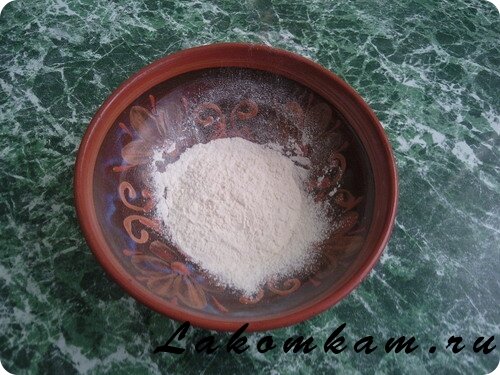 Выпечка «Завитушки из творога с шоколадом». Приготовление. В муку добавляем разрыхлитель теста, перемешиваем и просеиваем через сито.