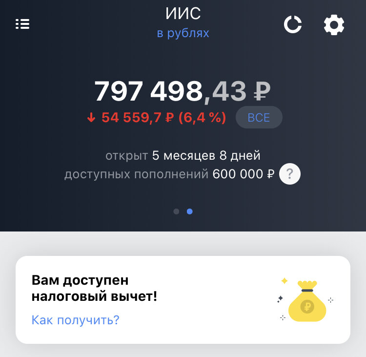 Привет, инвесторы! 👋 Забросил я немного свой блог, но на то были свои причины. Нет, я не болел коронавирусом 😉 Самое главное я не перестал торговать как на основном счете так и конечно на ИИС. Последние 2,5 месяца выдались жаркими для обоих счетов. Пришлось немного понервничать и посмотреть на серьезные минуса, но за счет холодного разума и четкого расчета удалось провести прибыльные спекуляции по обоим счетам. Для этого пришлось добавить немного денег. 😎 По итогу на счету ИИС прибавилось 400 тысяч рублей. И теперь он выглядит так: Добавить эти деньги я планировал внести на счет ИИС только в декабре 2020 года, как второй взнос. Возможности для таких спекуляций и точек входа бывают раз в 5 -10 лет. Пропускать их нельзя в связи с чем и добавил деньги. На этой недели пришло радостное письмо от налоговой, что проверка по моей декларации окончена. В личном кабинете высветились приятные цифры Я уже написал заявление на получение средств на карту. Ждем месяц. Если будут задерживать выплату