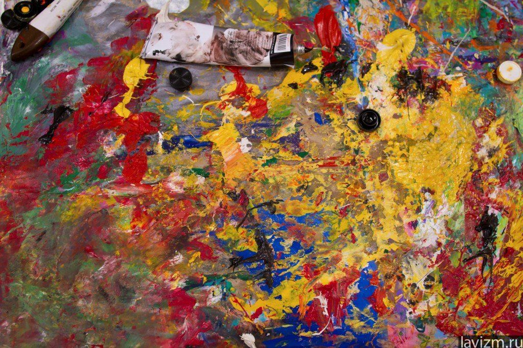У Анвара осталась испачканная палитра, точнее, кусок фанеры, который он использовал для смешения красок. Так как он собирался уезжать завтра в ночь, то подумал, что, может, нарисует ещё пару картинок утром, а значит, нужна будет чистая палитра. Он взял металлическую линейку, валявшуюся рядом, приставил её к углу палитры и веерным движением снял с палитры слой засыхающих красок.