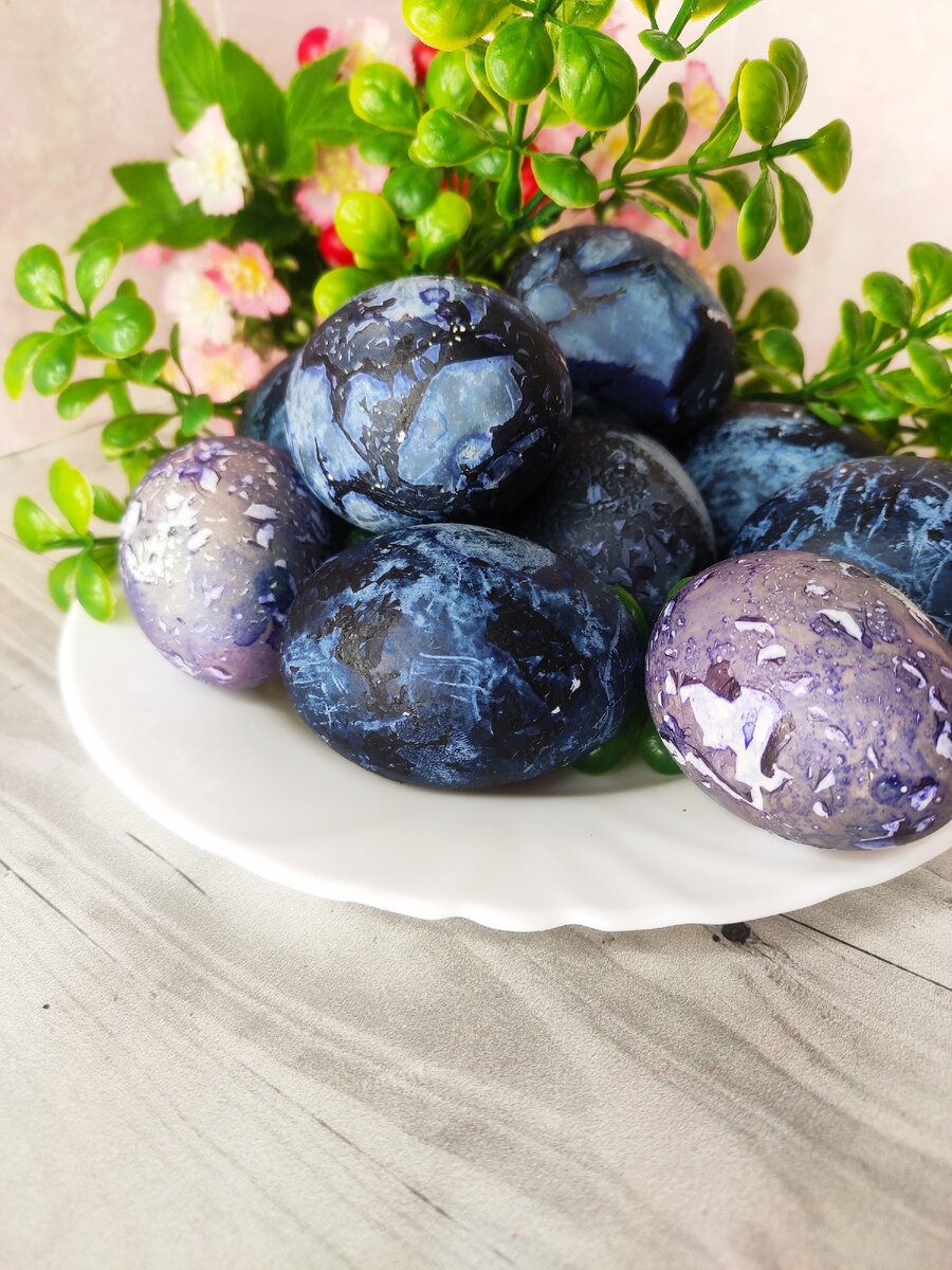 - 1 пачка листового чая каркаде («Ява», 80 гр); - 1,5 л воды; - 1 ст.л. уксуса; - яйца белые. . Заварить в кастрюле чай, не процеживать. Добавить уксус. Положить в чай уже варёные яйца. Оставить минимум на 1 ч, максимум на 10 ч. Чем дольше, тем насыщеннее. Внимание! Яйца покрываются плёночкой. Не надо ее смывать после того, как вытащите яйцо из чая. Просто промокните аккуратно бумажным полотенцем и дайте яйцу высохнуть. . Все!👌🏻 И никаких тебе кропотливых высиживаний над яйцами. Плюс чистые руки и кухня! Закинул яйца в чай и пошёл по делам:) А эффект такой, будто часа три вручную окрашивали акварелью😍