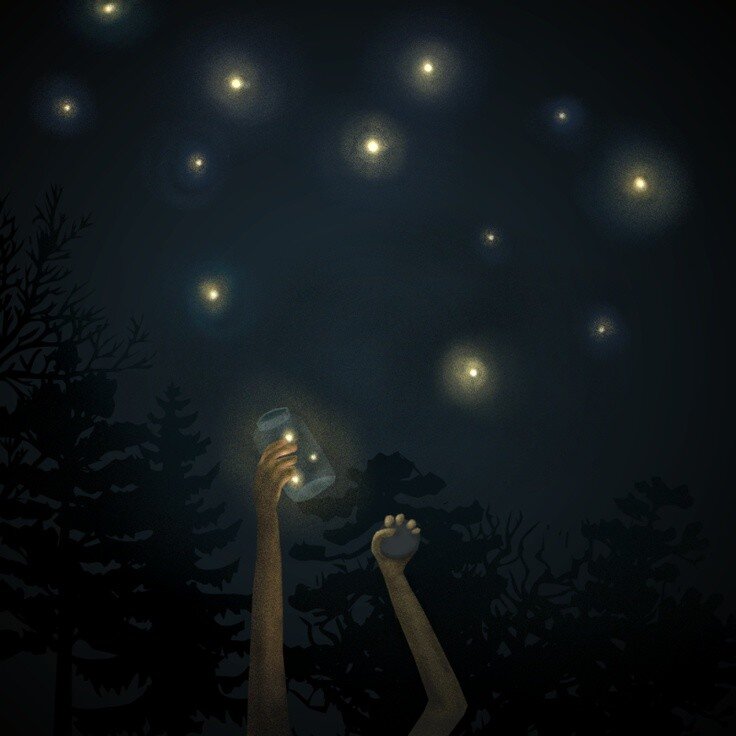На самом краю опустевшей деревни жил мальчик с медовыми глазами. Его звали Орсель. Он любил собирать упавшие звёзды. А падали они очень часто. Даже слишком. И всегда именно в эту деревушку. Так уж удачно он поселился. Собрав все опавшие звёзды в корзинку, Орсель решал, что нужно сделать с каждой из них. Некоторые он оставлял себе: складывал их в банки, мастерил им малюсенькие домики. Часть - зарывал на заднем дворе, если только они совсем затухали по дороге домой. Остальные дарил животным и растениям, которых очень любил, как любил лес. Орсель чувствовал, когда и кому нужно отдавать собранные звёзды. Тогда он отправлялся в лес через поле, и животные сами выходили к нему из чащи. И всегда столько, сколько звёзд он собирался отдать. И ни один зверь не приходил к Орселю дважды. Каждый из них аккуратно брал зубами свою звезду и закрывал пасть. Глаза зверя начинали светиться, а потом меняли цвет. Орсель не знал, что это значит, но верил в то, что всё делает правильно, как и должно быть. Вок