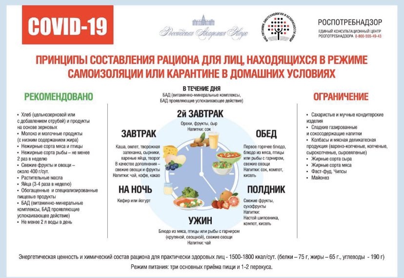 Друзья, сохраняйте табличку Роспотребнадзора с рекомендациями о питании в режиме самоизоляции или карантина.У вас получается так питаться?