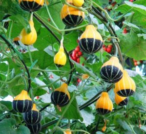 5. Используется для вертикального озеленения. Плети самостоятельно удерживаются на созданных опорах. Мини-тыквы сажают около пергорл, шпалер, вдоль заборов, стен, ими украшают беседки, зоны отдыха, открытые террасы. Кустовые формы выращивают в вазонах.