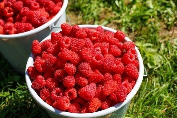 Как удается получать такой урожай. С участка 10х2,5 м мы собрали 8 ведер малины, что значительно больше, чем собирают соседи. На сбор урожая с каждого куста затрачивали по 30–40 минут. Пришлось даже смастерить маленькие табуретки, чтобы удобнее было сидеть так долго на одном месте. Малина посажена на расстоянии в ряду 70 см друг от друга, междурядья – 2,5 м. Растет она на специальной гряде шириной 70 см. Гряда огорожена кусками шифера, высота ограждения – 20 см, заглублено оно также на 20 см. Вдоль гряды сделаны валики из земли. Малина растет как бы в ложбинке, ее удобно поливать и подкармливать. Весной гряду укрываю навозом, соломой, компостом, подкармливаю малину мочевиной и золой. Через этот слой мульчи не пробиваются ни сорняки, ни поросль. Мульча предохраняет малину от вытаптывания, и в то же время она является как бы одеялом. Малину, растущую под теплым укрытием, начинаю собирать на 7–10 дней раньше, чем соседи. Все это дает существенную прибавку урожая. Особенно важна третья об
