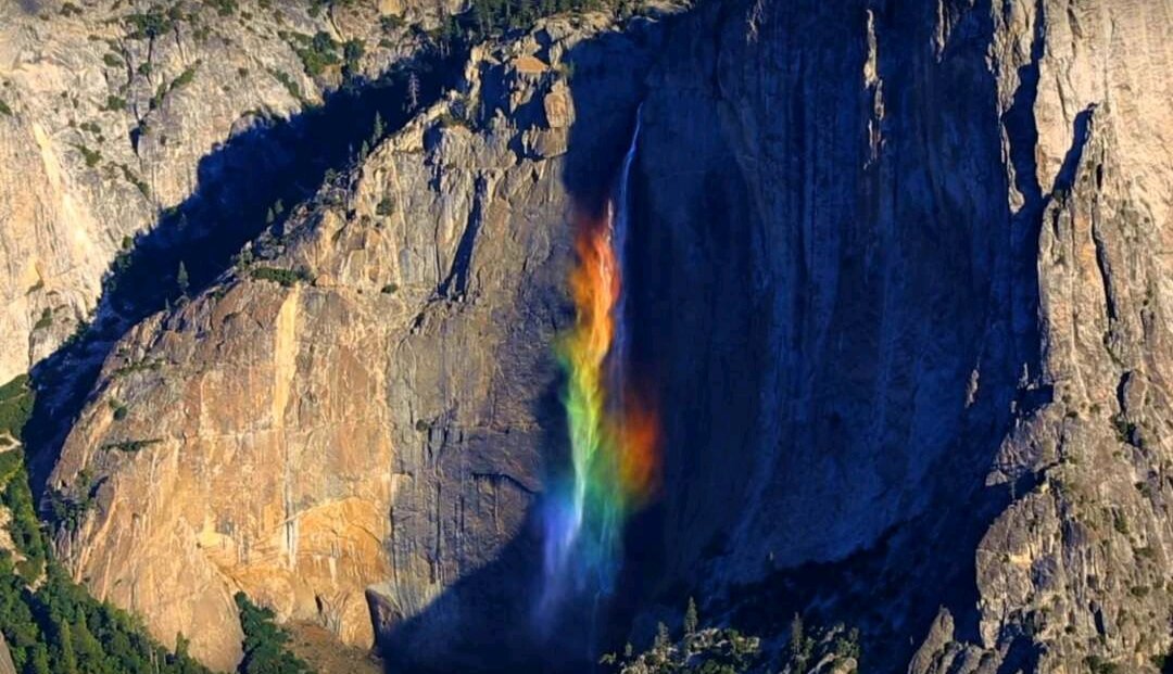 Дело было в Национальном парке Йосемити, что в Калифорнии. Водопад Йосемити расположен в одноименном национальном парке в Калифорнии. Место это обладает не только живописными, но и целебными свойствами: не зря первый и легендарный лесничий Йосемити по имени Гален Кларк прожил до 95 лет. А ведь врачи обещали Галену на 60 лет меньше из-за болезни легких, после которой он и решил пожить на природе. Но вернемся к водопаду. Йосемити входит в 20-ку самых высоких водопадов мира. Он состоит из трех сегментов, самый высокий из которых упирается в воображаемую отметку 739 метров. Бесперебойным поставщиком воды для водопада вот уже много веков является ручей Йосемити-крик. Хотя если ты хочешь увидеть водопад во всем его полноводном могуществе, приезжать в национальный парк лучше весной и в начале лета. Впрочем, и в другие сезоны на водопаде могут происходить поистине удивительные вещи… Вот, например, видео, снятое фотографом Грегом Харлоу, который, вообще-то, караулил рассвет. Неожиданно его