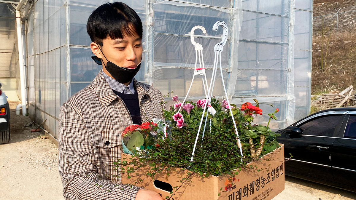 Хотя данный тц специализируется в основном на одежде, обуви и аксессуарах, там каким-то образом затесался ларек с цветами. Ассортимент этого ларька был очень скуден, но я все же остановилась посмотреть необычное растение под названием тилландсия. К нам тут же подбежала продавщица и присела Кюдэ на уши, мол это растение хорошо очищает воздух, сейчас его в Корее купить становится все труднее и труднее, т. к. ввоз прекратился из-за ситуации с короновирусом и бла-бла-бла.