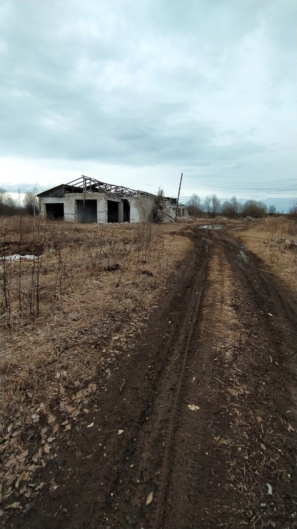 Сейчас я хочу рассказать про разрушенное здание гаража ( возможно его использовали для других целей). При самом въезде была небольшая дорога в сторону, куда мы свернули в надежде спрятать там свой мотоцикл.