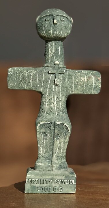 Во время археологических раскопок на территории Кипра были найдены многочисленные крестообразные фигурки, изображаю женское тело с расставленными в стороны руками. Самая известная из них высотой примерно 17 см. обнаружена недалеко от Пафоса в деревушке Помос и по этой причине названная Помосский идол. Помосский идол датируется возрастом в 5400-4500 лет, а создан он был из материала, именуемого пикролит. Предполагается, что данная статуэтка является символом плодородия (фертильности). В настоящее время Помосский идол выставлен в Археологическом музее Кипра в Никосии. Главной особенностью данной статуэтки является то, что на шее у фигурки изображен кулон точно такой же формы, как и сам идол. Ученых до сих пор волнует вопрос, с какой целью в статуэтке сделан упор именно на форму креста. Было найдено еще несколько небольших скульптур, в которых крест получается соединением двух тел, наложенных перпендикулярно одно на другое в области сердца. Не всегда возможно определить половую принадле