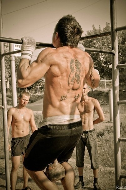 1)ТРЕНИРУЙ ХВАТ Как при выполнении отжиманий первым сдает кор, так и на подтягиваниях кисти могут предать тебя раньше положенного. Отбрось штангу и качковские журналы — варианты сгибаний/разгибаний кистей здесь тебе не помогут. Начни висеть на турнике, лазать по канату или хотя бы просто «бегать» в висе по высокой горизонтальной лестнице на детской площадке. Нет ни каната, ни площадки, ни лестницы — перебирай руками, вися на турнике, хуже не будет. 12 повторов это примерно 40-45 секунд, так что постарайся висеть на двух руках хотя бы 60 секунд, а на одной не менее 20-и за подход. 2)ТРЕНИРУЙ СУПИНАТОРЫ ПЛЕЧА Делай «пугало» с гантелями, как умалишенный, каждый день по 1-2 подхода. Повторов делай много (15-30), ведь супинаторы плеча должны обладать достаточным уровнем выносливости, чтобы удержать твои плечевые кости в правильном положении на протяжении всего подхода. Помимо этого прицельно укрепляй задние дельты и середину трапеций. Разводки и тяги в наклоне подойдут. 3)ДЕРЖИ ЯГОДИЦЫ