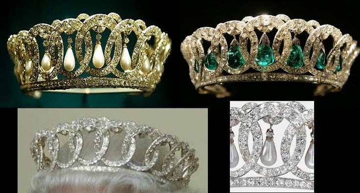 Задолго до попадания в стены британского королевского дома тиара принадлежала великой княгине Марии Павловне, супруге великого князя Владимира Александровича. Но в 1920 году великой княгине пришлось эмигрировать, а тиара осталась в сейфе Владимирского дворца. Хозяйка не смогла забыть об оставленных украшениях, поэтому вскоре агент британской разведки, выполнив задание, вернул более 200 ювелирных предметов русской аристократке в изгнании. Великая княгиня завещала все камни детям. Дочь ее позже продала тиару королеве Великобритании Мэри. Кстати, на разных портретах Елизаветы II можно заметить, что тиару украшают то жемчужные, а то изумрудные подвески. Да, подвески действительно съемные!