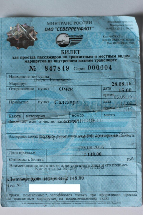 Предшествовавшая плаванию эпопея с покупкой билета описана в предыдущей части. По её результатам вы получаете вот такой бланк! Если покупали билет удалённо, как мы, за билетом прийти обязательно. Никакой электронной регистрации на корабле, естественно, нет.