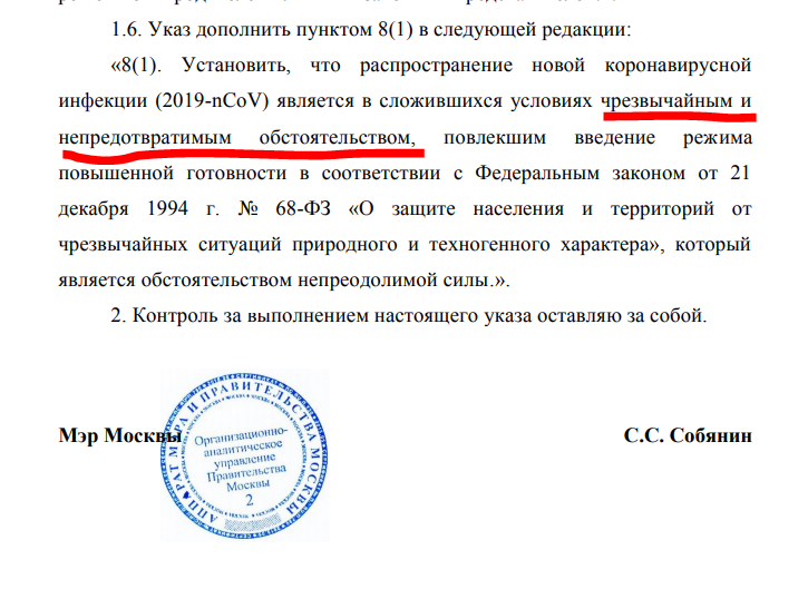 https://www.mos.ru/upload/documents/docs/12-YM.pdf И чего вы стесняетесь его применять ваш так требуемый форс-мажор возникающий при ЧС? Он у вас уже есть. Смело звоните в банк и применяйте.Смело увольняйте людей нахер без оплаты.