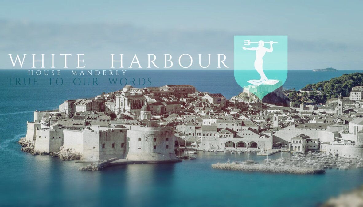 Белая гавань совершенно не похожа на другие города Севера. Она чистая, аккуратная, ухоженная, полностью каменная и выстроена в белом цвете, улицы вымощены тоже былым мрамором. Эдакий "северный Старомест", конечно, не такой огромный и презентабельный, но тем не менее Белая гавань очень сильно выделяется на фоне остальных городов и замков Севера, в основном серых и унылых. Главной же достопримечательностью города помимо Нового замка и Снежной септы можно считать огромный старинный фонтан в виде водяного с воздетым трезубцем. Местные называют его Стариком-Рыбоногом, а площадь - площадью Рыбонога. Именно этот рыбоног и красуется на гербе дома Мандерли, о котором поговорим подробнее: