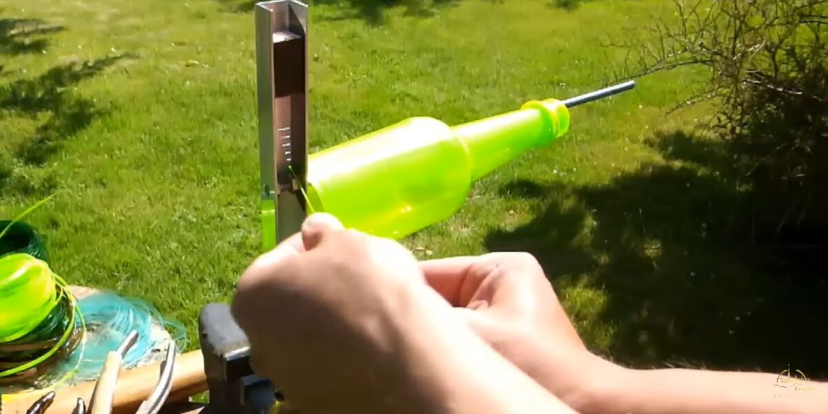 Если у вас есть ненужные бутылки то я могу вам посоветовать приобрести в интернет магазине или сделать самому бутылкорез. Бутылкорез представляет из себя изобретение позволяющее нам из любой пластиковой бутылки быстро получить длинную пластиковую ленту, причём ширину ленты можно регулировать. В интернете есть множество обучающих видио по его изготовлению. Советую вам бутылкорез Адвоката Егорова. Он хорош тем что нити получаются ровными, одной ширины. Для его создания не потребуется много средств. Он лёгок в сборке. Для бутылкореза вам потребуется: 1 Алюминиевый уголок или швейлер, 40 см хватит. 2 Лезвие от канцелярского ножа. 3 Шпилька М5. 4 3 гайки М5. 5 Деревянный брусочек, распорка. 6 Шуруповёрт и сверло. 7 Пилка по металлу. Все это вы можете приобрести в любом хозяйственном магазине. Подготовка к сборке. В обрезке швейлера нужно просверлить сквозное отверстие под болт М5. Таким образом чтобы это отверстие совпало с монтажным отверстием в лезвии концелярского ножа. Затем отступ