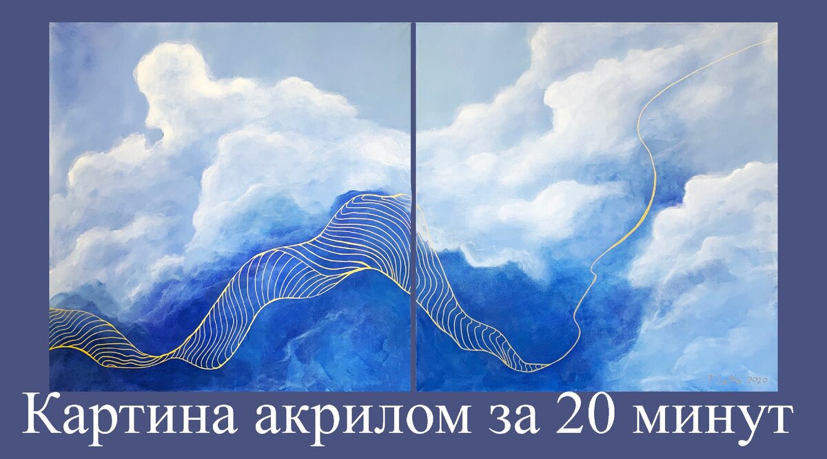 Картина акрилом за 20 минут / Рисуем небо / Мастер класс