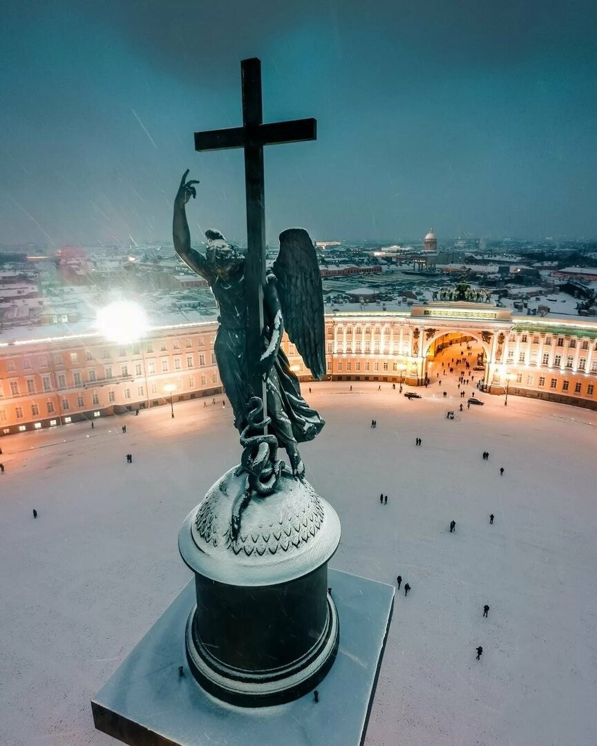 Например, самое простое, мало кто знает, но Ангел, который ютиться наверху колонны, похож на Александра Первого, Победителя. Скульптор Б.И. Орловский таким образом хотел отдать дань императору, при котором Россия стала страной победителем в войне с Францией.