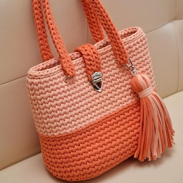 Из трикотажной пряжи получаются очень красивые, яркие сумки. Вяжутся они довольно легко и быстро. В большинстве сумок из трикотажной пряжи не делают подкладку, так как она очень плотная. Из подкладочной ткани можно пришить карман внутри сумки. Можно, конечно, его и вывязать, но тогда он добавит веса сумке. О весе: зависит, конечно, от размера сумки. Клатч, небольшой рюкзак, или маленькая сумочка будут нетяжелые. А вот большая сумка будет и весить довольно много. Хотя и большие кожаные сумки довольно тяжелые. Для многих сумок потребуется фурнитура: магнит, замок, ручки, клапан, карабины, кольца... Не пугайтесь. Вся фурнитура продается в магазинах для рукоделия, поэтому достать её не составит труда. Могут возникнуть сложности с креплением некоторых элементов, так как сумка из трикотажно пряжи получается довольно толстой, то некоторые крепления до изнаночной стороны просто не достают. Но ничего страшного в этом нет - просто попробуйте закрепить их в середину между нитями. Для вдохновения
