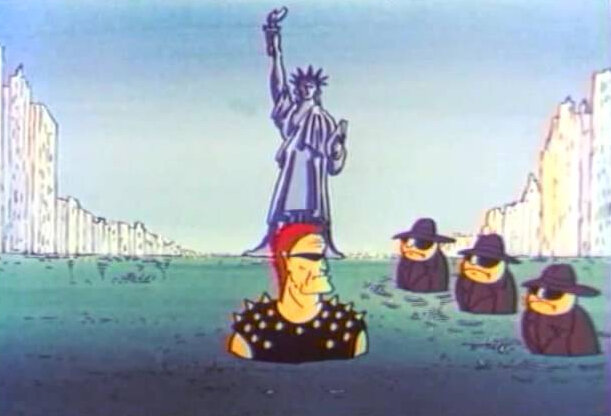Олды помнят мультсериал про капитана Пронина, похожего на Арнольда Шварценеггера в образе Ивана Данко из "Красной жары". Для моего канала особый интерес представляет вторая серия — «Капитан Пронин в Америке» (1993). Не буду пересказывать нехитрый сюжет и анализировать его в жанре поп-психоанализа. Отмечу лишь, что он хорошо показывает русское восприятие Америки и отношение к ней на заре 90-х. Саундтрек к мультфильму написал Сергей Лемох (Кар-Мэн), его танцы как раз пародирует киборг. Дух времени нашёл отражение и в двухсерийном фантастическом мультфильме "Вампиры Геоны/Хозяева Геоны" 1991-92 годов. К "Шварценеггеру" здесь добавился "Сталлоне". Оцените их настоящий амэриканьски акциент!
