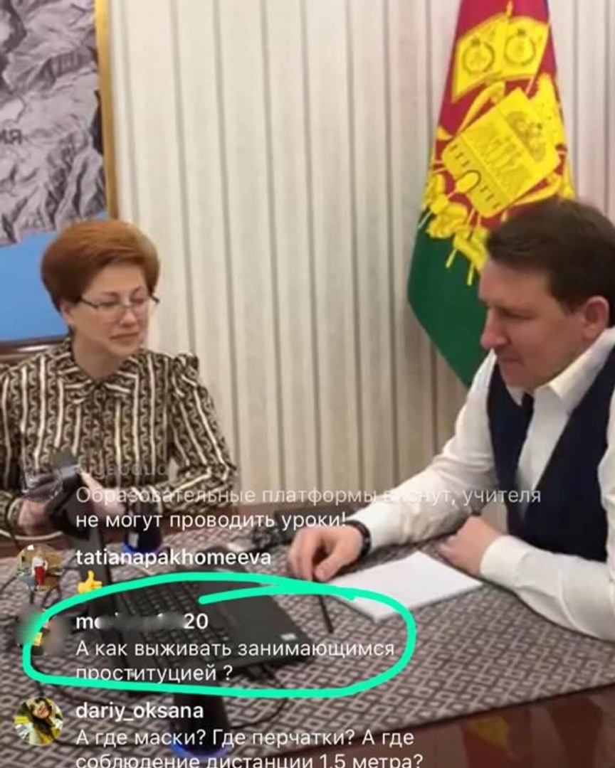 Проститутки спросили у мэра Сочи, как им выживать в это тяжелое время. Данный вопрос был задан в прямом эфире , и мэр города не сразу смог подобрать слова, чтобы ответить. Интернет-пользователи тоже подумали над вопросом и решили, что проституткам стоит продолжать работать, но в масках и перчатках.