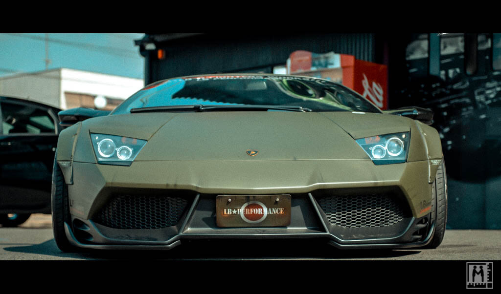Сейчас мы находимся возле Liberty Walk, где Като-сан подготовил для нас небольшой подарок — Lamborghini Murcielago сделанную в стиле милитари (этот автомобиль засветился на Токийском автосалоне еще в 2015 году) Като-сан всегда питал слабость к Японским истрибителям и хотел сделать проект, похожий на “rei-sen”, известный во всем Мире, как "Zero" — один из известных представителей Второй мировой. Хотя этот автомобиль построен в мирных целях, и не оснащен вооружением своего идейного прародителя, он по прежнему выглядит очень агрессивно и угрожающе, благодаря своей раскраске, в стиле самолета-истребителя. Работа по покраске кузова выполнена просто потрясающе, с обычным вниманием LW к деталям, с большим количеством достоверной военной маркировки. Благодаря расширению от LW и без того широкого кузова, Ламбо всем своим стремительным силуэтом и впрямь напоминает настоящий истребитель, который в любую минуту готовый буквально взлететь! Murcielago оснащен пневмоподвеской с дистанционн