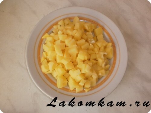 Режем кубиками картофель.