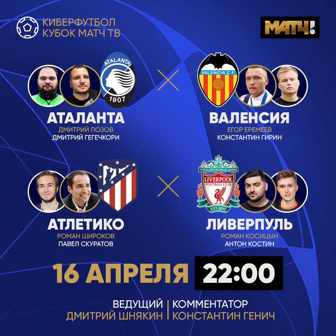 Первый игровой день Лиги Чемпионов по киберфутболу раскрутил маховик зрительского интереса к проведению этого турнира. Трансляции и обзоры матчей, на Матч ТВ, опять проходили очень увлекательно и весело. Участников матчей и друг друга постоянно подкалывали Дмитрий Шнякин и Константин Генич. В первом матче, очередного игрового дня, сошлись испанская "Валенсия" и итальянский клуб "Аталанта". За "летучих мышей" играли комментатор Егор Еремеев и футбольный блогер Константин Савр. Итальянцами управляли известный комик Дмитрий Позов и IT-специалист Дмитрий Гегечкори. Несмотря на огромное территориальное преимущество, которым владела "Аталанта" по ходу первого тайма, свой первый мяч забила все-таки "Валенсия". Итальянцы быстро отыгрались, но также спустя несколько секунд пропустили. Счет 2:1 не изменился до конца встречи. Второй матч был более статусным по вывеске. Встречались действующий обладатель ЛЧ "Ливерпуль", который кстати в реальной жизни уже сложил свои полномочия и мадридски