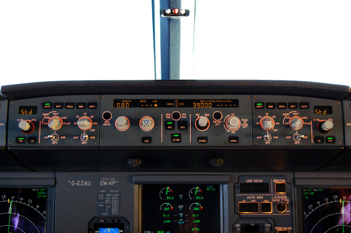 Автопилот - это очень интересная и нужная вещь в современном самолёте, ведь при полёте на крейсерском эшелоне, пилоты устают, и в этот самый момент им на помощь приходит он - автоматический пилот. Конечно это система не заменит человека, и точно в скором времени мы не увидим в небе самолёт, который полностью будет управляться компьютером. Но всё - таки какой - бы страшной и непонятной не была эта система, о том, что она из себя представляет, я вам сегодня расскажу. И так с кабиной Airbus A320 вы познакомились в моей прошлой статье, сегодня мы обратим своё внимание на козырёк кабины - это и есть автопилот. На этой панели куча кнопок, какие - то экранчики, согласен, это не понятно, но всего лишь на первый взгляд. Первое о чём должен сказать - автопилот умеет не много, и захватить самолёт и увести его на северный полюс он точно не сможет :) Теперь давайте серьёзно: перед вами одна длинная полоска - это экран, на котором во время полёта можно отслеживать параметры: скорость, курс полёта,