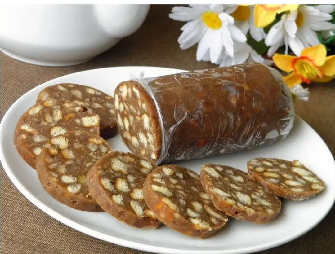 - Плотно сформировать и раскатать в форме колбасы.