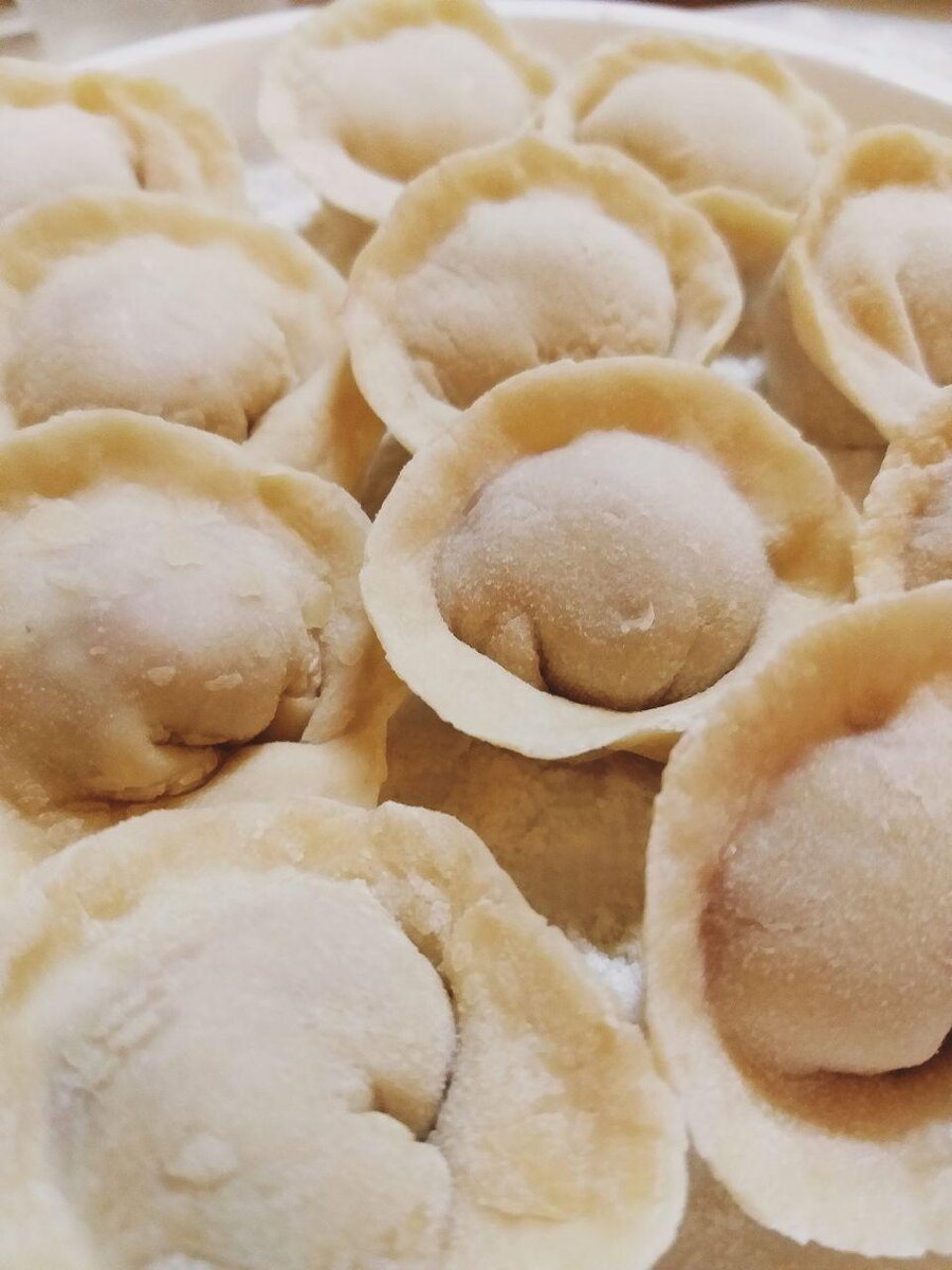 Тесто: Мука 300 г Яйцо 1 шт Соль щепотка Вода 90 мл Начинка: Фарш (говядина + свинина) 300 г Специи (соль, перец, лук сушёный, молотый чеснок) Рецепт: Делаем тесто. В одну ёмкость кладём муку, во второй взбиваем яйцо с солью и водой. Делаем углубление в муке и вливаем яичную смесь, перемешиваем и формируем тесто. Даём отдохнуть тесту 30-40 мин. Начинка. В сырой фарш добавляем все специи по вкусу и перемешиваем. Берём тесто, раскатываем его и вырезаем кружочки, можно это сделать с помощью небольшой кружки. И лепим пельмешки. Когда пельмешки будут сформированы, отправляем их в кипящую воду, предварительно заправленную специями (соль, перец, лавровый лист). Когда пельмени всплывут, варим их 5-7 минут. Важно! Тесто раскатать тоненькими, а то сложно будет жевать.