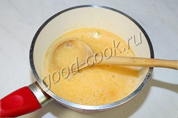 0,5 стакана лимонного сока (125г), 2 яйца, 1 стакан сахара (200г), 2 ч ложки цедры, щепотка куркумы