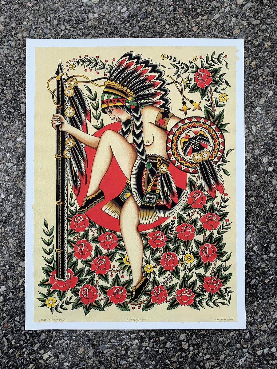 "Солнечный танец" Одна из самых популярных работ, татуировщика 20 века - Берта Гримма, реплицируемая по сей день. Немного о нем: Гримм родился в 1900 году и с американской тату-культурой начала XX века в возрасте 11 лет. Свою роль сыграло то, что он жил в городе Портленд. Это портовый город, который находится на северо-западном побережье США, и посему он являлся центром сосредоточения тату-мастеров. Мастерские татуировщиков стали для парня вторым домом. Первый опыт татуировщика юный Берт получил тогда, когда ему было всего 12 и с тех пор, оставшиеся 70 лет его жизни были плотно связаны с татуированием и даже перешагнув порог в 80 лет, продолжал принимать клиентов на дому, вплоть до своей кончины в 1985 году. #тату_биографии
