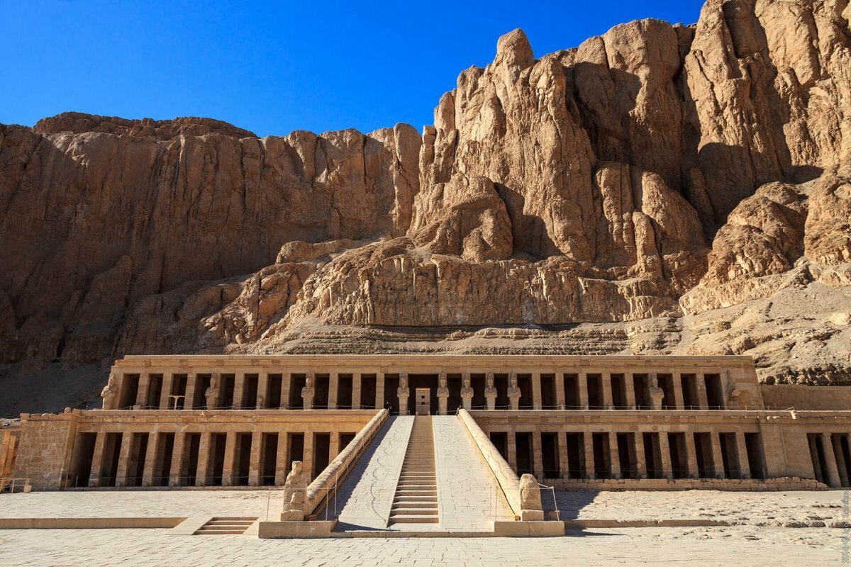 Заупокойный храм Хатшепсут в Дейр эль-Бахри — это усыпальница позднего времени, возведенная в начале XV в. до н. э. в долине Дейр эль-Бахри на трех скальных террасах. Храм был построен великой женщиной-фараоном Хатшепсут. После смерти фараона Тутмоса II у власти оказалась его жена Хатшепсут, несмотря на то, что правителем должен был стать истинный преемник Тутмос III. В момент смерти Тутмоса II, истинный наследник престола был еще ребенком и потому ничего не мог противопоставить царице Хатшепсут. Женщина-фараон правила 21 год (умерла на 22-ом году правления). Как только она «взошла на трон», она сразу же взялась за обширные строительные работы. Постройка заупокойного храма царицы Хатшепсут началась еще при ее жизни. И архитектором его являлся Сенмут. То место, где расположен заупокойный храм Хатшепсут в Египте, сейчас называется Дейр эль-Бахри (археологическая зона в окрестностях Луксора (древние Фивы)). Недалеко от этого места находится храм Ментухотепа II, являющегося родоначальник