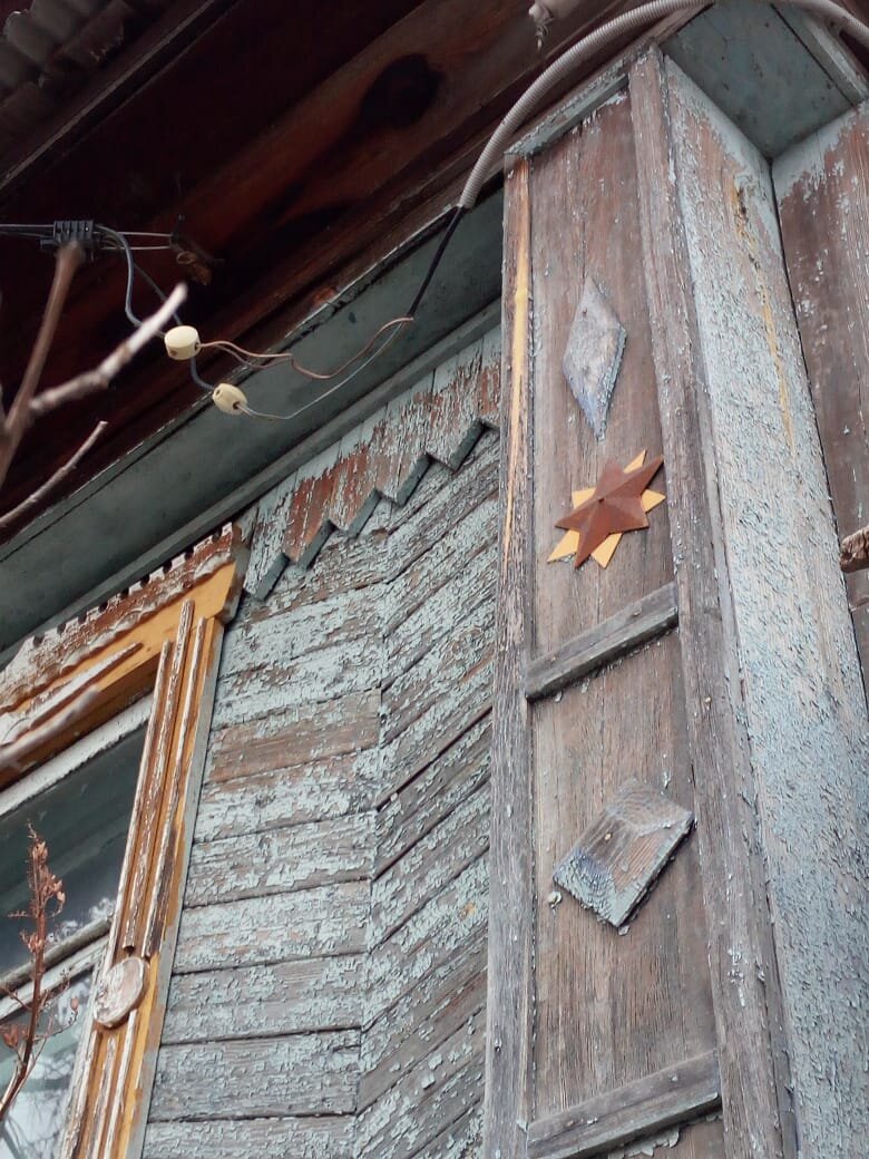 С детства помню в посёлке Тургояк на домах были звёзды. Обозначали членов семьи, ушедших на фронт во время Великой отечественной войны. Звезда на чёрной подложке - не вернулся, на жёлтой - выжил. Такие звезды были почти на каждом доме. Помню, на одном их было сразу пять, и все на чёрном. Расстраивалась, когда проходила мимо. Сейчас, спустя лет 30, звёзд на избах почти не осталось - снесли, продали, перестроили. Для интереса немного прошла по одной улице. На 6 старых домах все же сохранились памятные знаки: 5 звёзд на чёрном и 2 звезды на жёлтом. Пять погибших, в одном дворе - два. На доме - две "чёрных" звезды. Чьи-то два сына, может быть. Радовались с дочкой жёлтым отметкам: "Этому дому повезло: хозяин вернулся живой!" Такой вот был урок краеведения. Это Челябинская область.