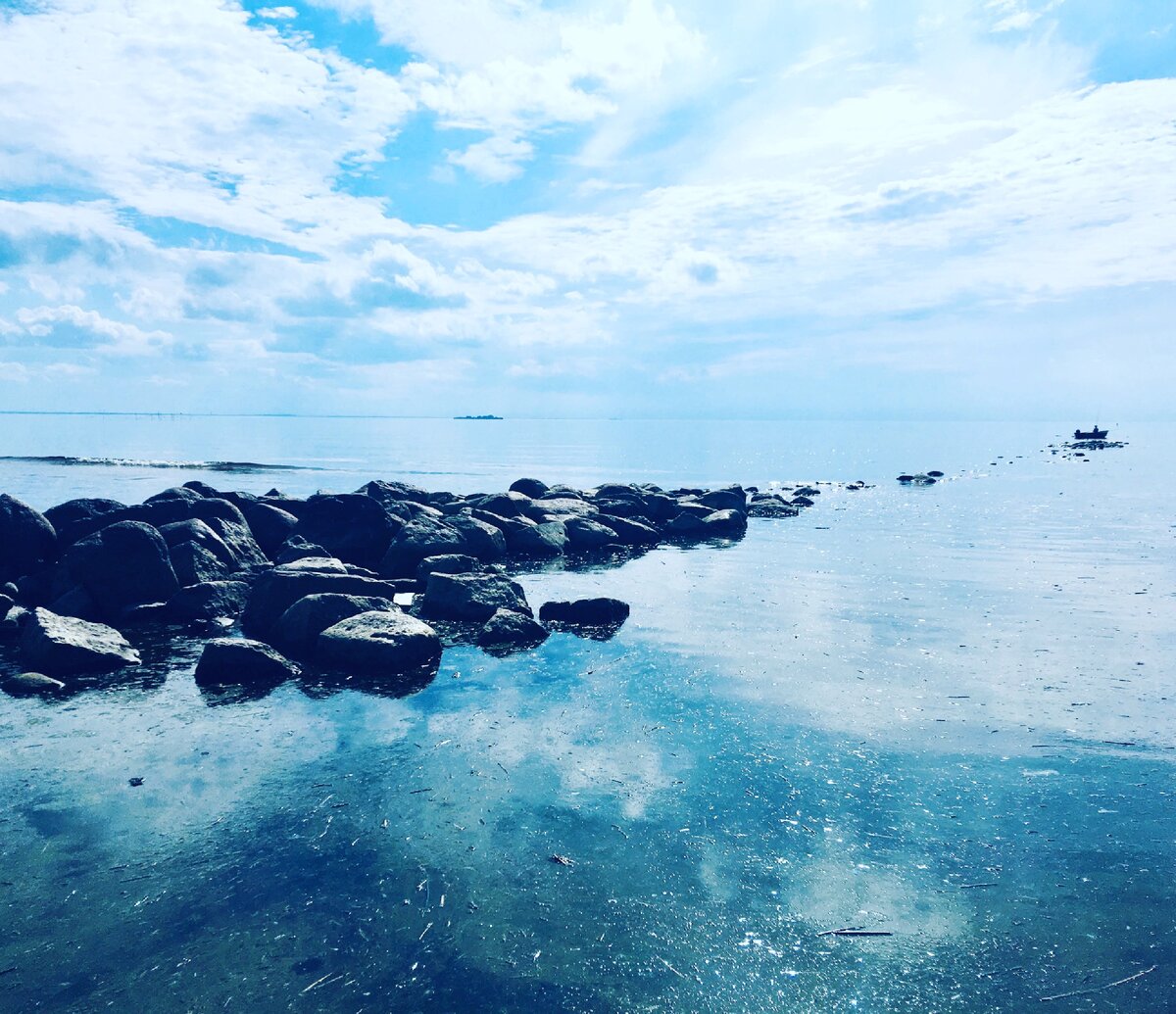 В Питере жаркое лето! Да, эти слова Питер и жаркое лето редко встречаются вместе, но в этом году нам повезло! Если вы живете или приехали в Питер и хочется отдохнуть на пляже, то отправляйтесь на Ермоловский пляж в Сестрорецке. Можно добраться на электричке: сесть на Финляндском вокзале и доехать до жд станции Курорт. Минут 5 пешком и вы на месте. Уже подъезжая к станции, слева увидите водную гладь и длинный песчаный берег. Это и будет Ермоловский пляж. И да, на Ермоловском пляже можно сделать такое чудесное фото, я применила чутка фильтра, что бы вода и небо были голубее. И да, на этих камнях можно разместиться, мечтательно созерцая как рыбак в лодке удит рыбу Вы же заметили на фото рыбака в лодке? Как он красиво вписался в общую картину.