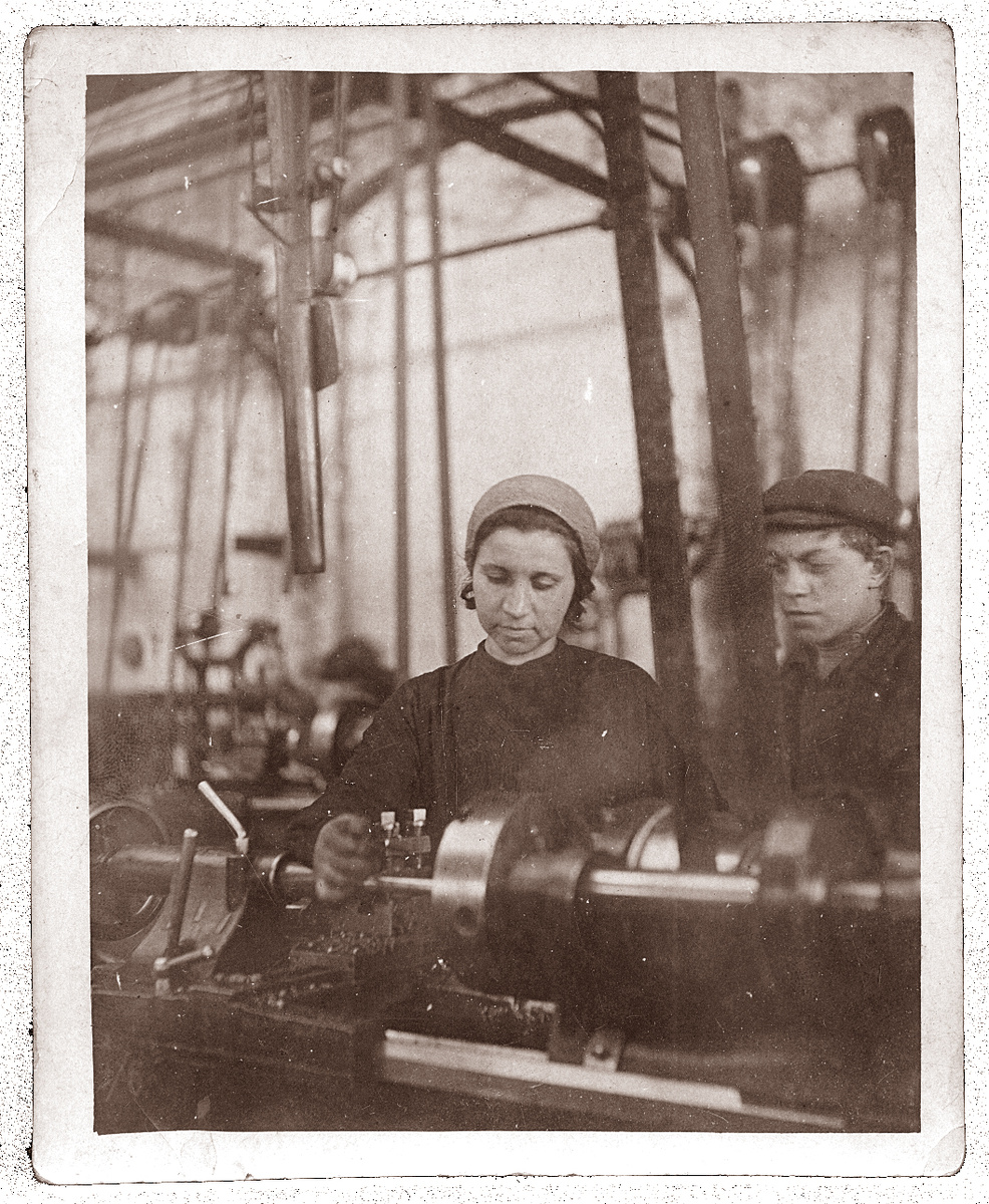 К сожалению, у меня сохранилось мало фотографий тех лет. Вспоминаю фото, на котором запечатлена моя бабушка в вагоносборочном цехе на митинге, посвященном отправке продукции на фронт. В цехе висел лозунг: «Хочешь врага победить на войне – план выполняй вдвойне и втройне!» Сохранилось другое фото, где моя бабушка, будучи стахановкой, обучает подростка у токарного станка в вагоносборочном цехе №17.