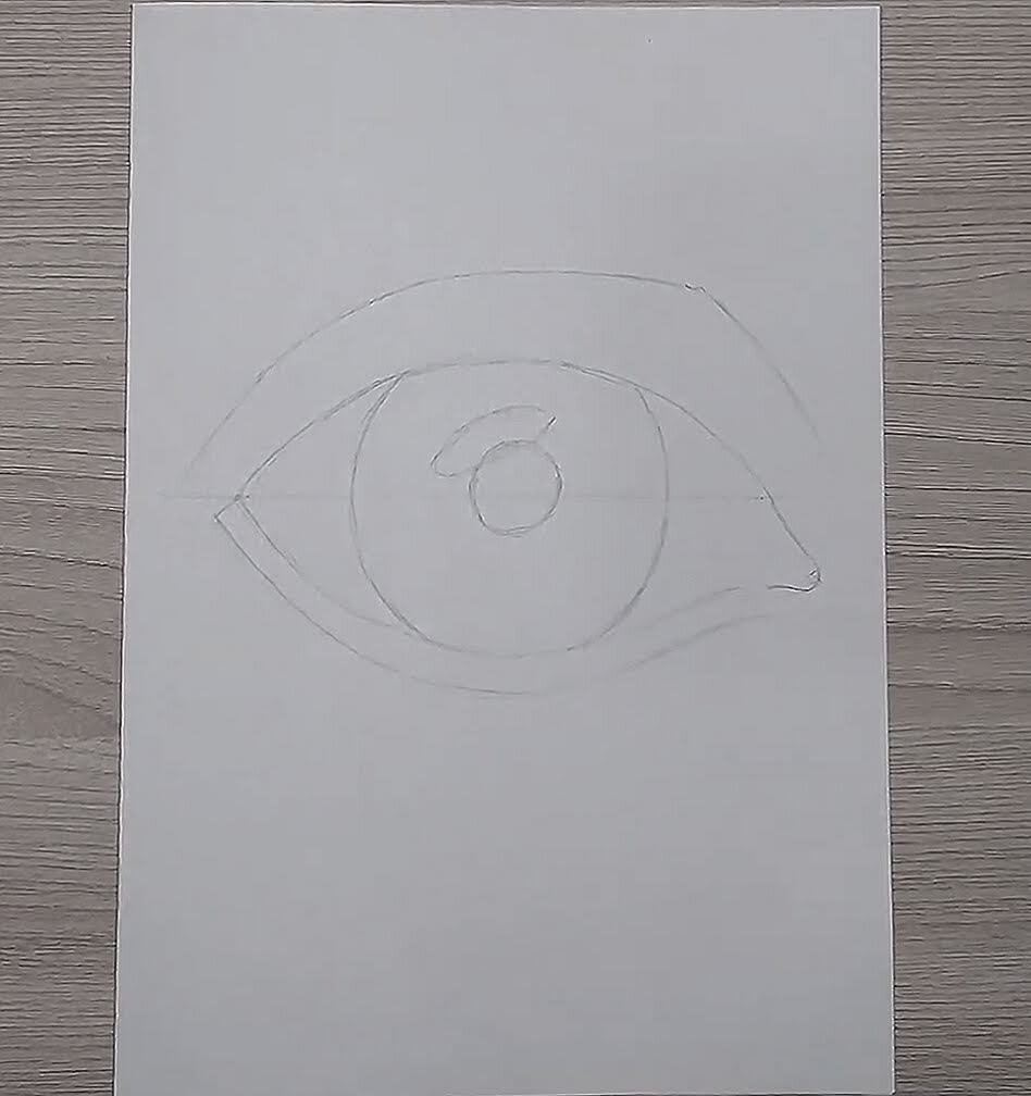 Выразительный взгляд способен вдохнуть жизнь даже в простой карандашный набросок, потому умением рисовать глаза начинающему художнику никак нельзя пренебрегать. В своем подробном уроке, я постараюсь поделиться секретами. 1.Сначала на листе бумаги наметьте горизонтальную линию , при построении она служит ориентиром.Теперь рисуем контур глаза. Обратите внимание, что зрачок в человеческом глазу расположен не точно посередине глаза, а смещен чуть вверх. Это очень важно для создания реалистичного взгляда. 2.Когда основные границы намечены, можно приниматься за штриховку. Для этого лучше сменить карандаш и взять как можно более мягкий. Заранее наметьте на радужке блик, который будет немного «заходить» на зрачок, эту область заштриховывать не нужно. 3.Переходим к радужке, штрихуйте ее тонкими линиями, не заходя на границы блика. Он должен всегда оставаться самой яркой частью вашего глаза, это придаст ему реалистичность. 4.Переходим к векам. Нанесите штриховку следуя плавной фор