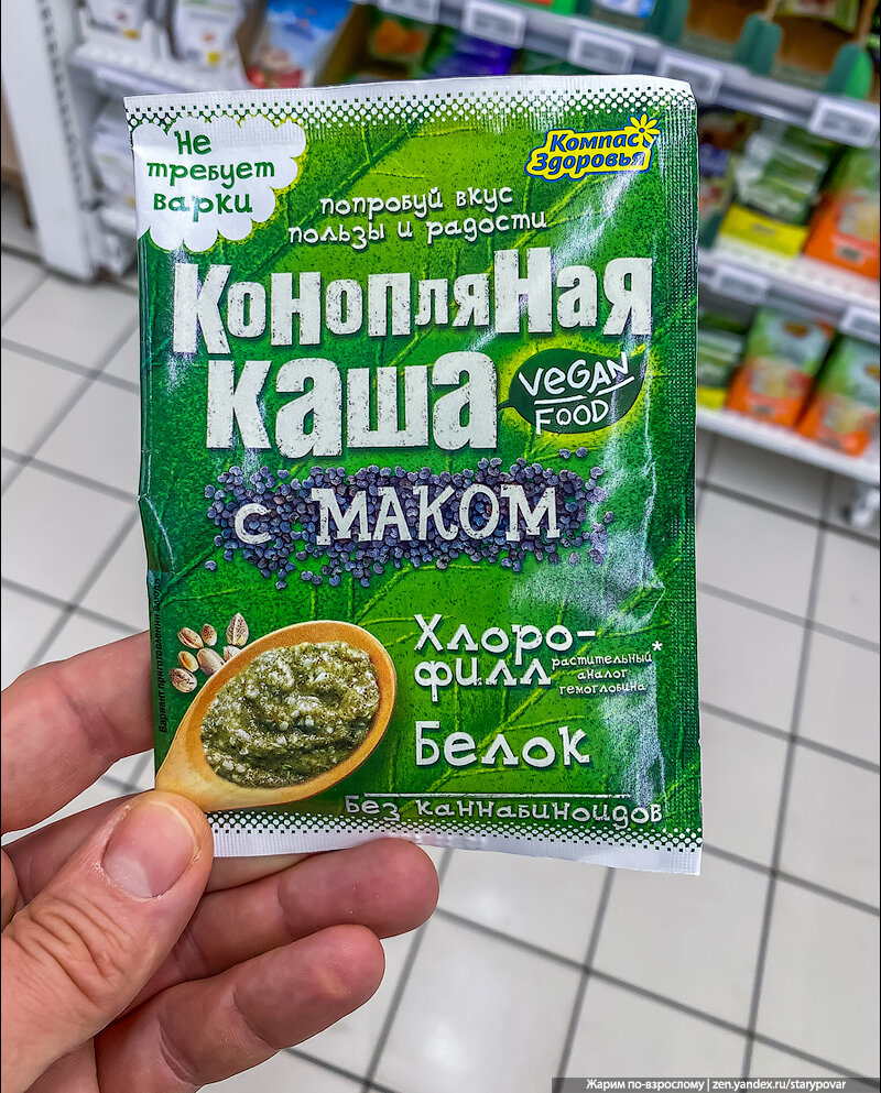 Вдруг, смотрю, какую-то кашу никто не берёт. Присмотрелся: конопляная. Вот и решил купить, попробовать