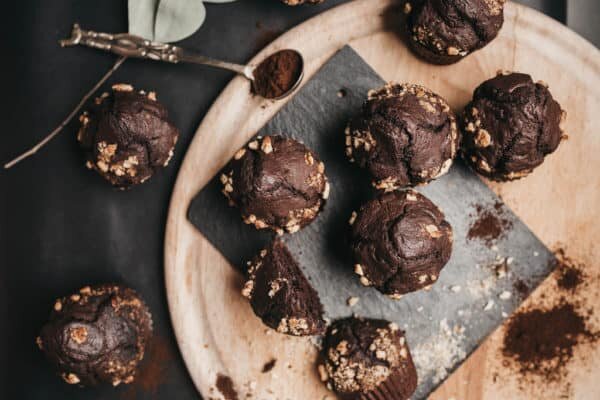 Если вы являетесь поклонником сладкого и, прежде всего, шоколада, то вам понравится рецепт! Ингредиенты: 500 г муки грубого помола 1/2 пакетика разрыхлителя (возможно, также пищевой соды) 1/2 чашки тростникового сахара (или финиковый сироп) 1/2 чайной ложки соли 1 чашка растительного молока (мы также можем добавить воду или добавить больше молока) 2 чайные ложки корицы 1/2 чашки какао 2 столовые ложки масла 1/2 плитки темного шоколада 1 горсть орехов (по вкусу) Приготовление: Разогреть духовку до 180 ° С. Сначала смешайте сухие ингредиенты, а затем смешайте молоко и масло. Нарежьте (или смешайте) шоколад и орехи и смешайте их в тесто - оно должно быть слегка жидким. Вылейте смесь в смазанные маслом формочки и выпекайте 20-30 минут. Готовность проверяем с помощью зубочистки. Если тесто не прилипает , духовку можно выключить. СОВЕТ: На водяной бане растопите темный шоколад поверх кексов и украсьте измельченными орехами.