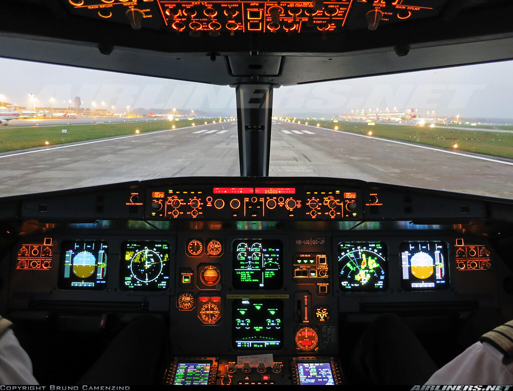 Сегодня поговорим о не менее важной части кабины любого самолёта - его приборах. Главный пилотажный дисплей (PFD - Primary Flight Display) - на этом дисплее пилот может следить за параметрами полёта: текущей скоростью, высотой полёта, режимами работы автопилота, вертикальной скоростью. Также на этом дисплее можно увидеть ленту на которой отображается текущий курс полёта (также текущий курс можно видеть на навигационном дисплее). Навигационный дисплей (ND-Navigation Display) - из названия ясно, что этот дисплей отображает всю информацию, которая относиться к навигации в небе. И так давайте поговорим о этом дисплее подробнее: На козырке, кроме панели автопилота есть селекторы переключения карт на навигационном дисплее, их масштаба, а также кнопки с выбором того, что будет отображаться на дисплее: CSTR (Contrain) - изменение высот. Можно определить когда самолёт начнёт снижаться. WPT (WayPoint) - навигационные точки маршрута (их также можно увидеть на вкладке F-PLN в бортовом компьют