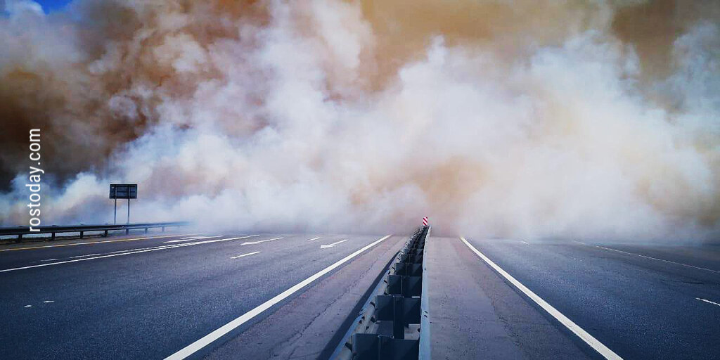 На трассе М4 горело поле. Из-за дыма на два часа перекрывали проезд. Фото дня